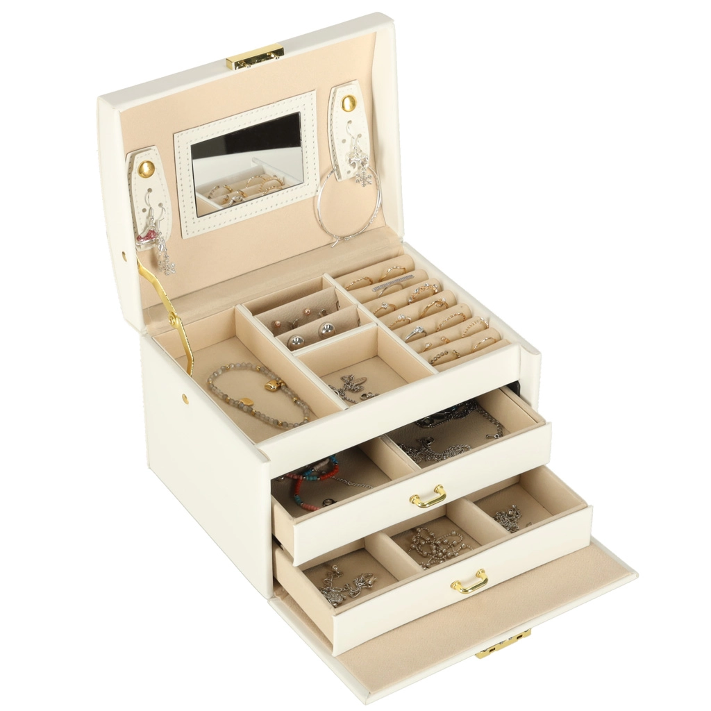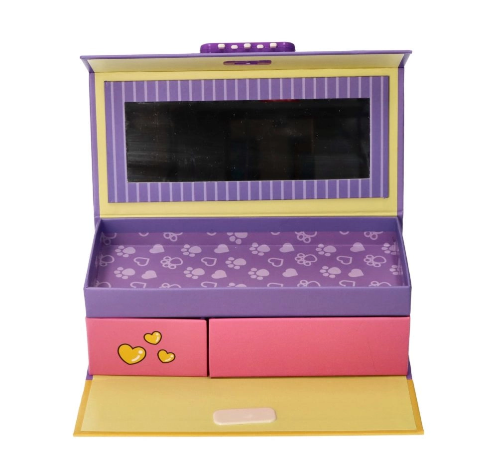 L’organizzazione studiata dei portagioie facilita l’ordine quotidiano: scomparti e cassettini per i braccialetti, rulli per gli anelli, ganci per le collane e una morbida imbottitura che protegge le superfici delicate. Grazie allo specchio i bambini possono provare facilmente gli accessori, mentre la chiusura sicura e l’eventuale chiusura con chiavetta (portagioie con serratura, portagioie per bambini con lucchetto) tengono i tesori al sicuro. La struttura resistente in legno o cartone rigido evita graffi e grovigli di catenine, mantenendo tutto ben visibile al proprio posto.