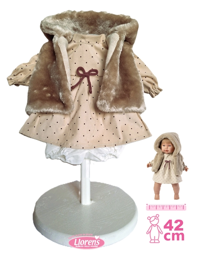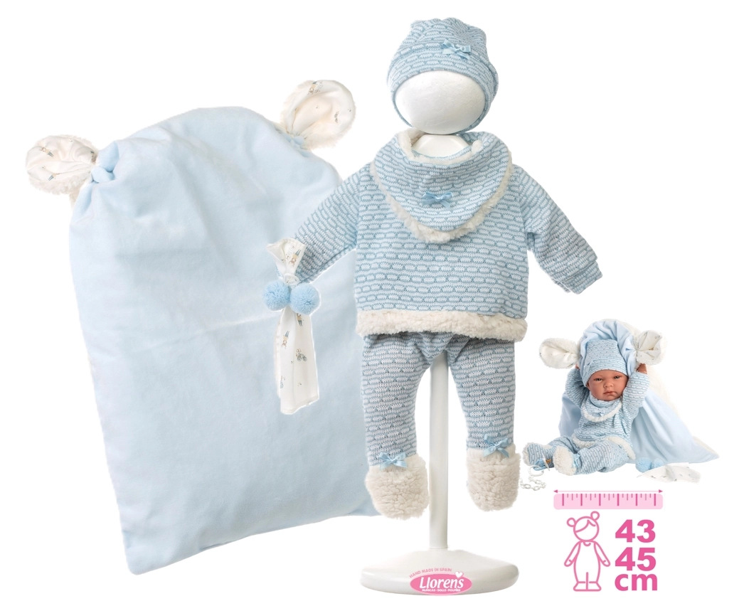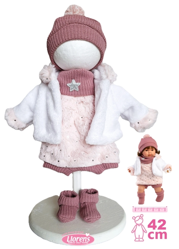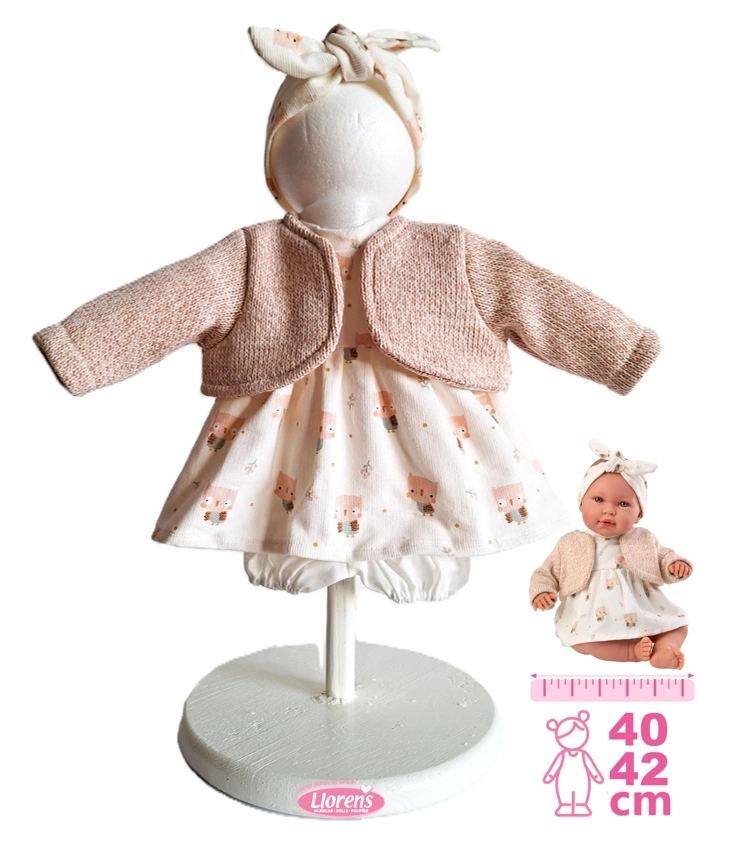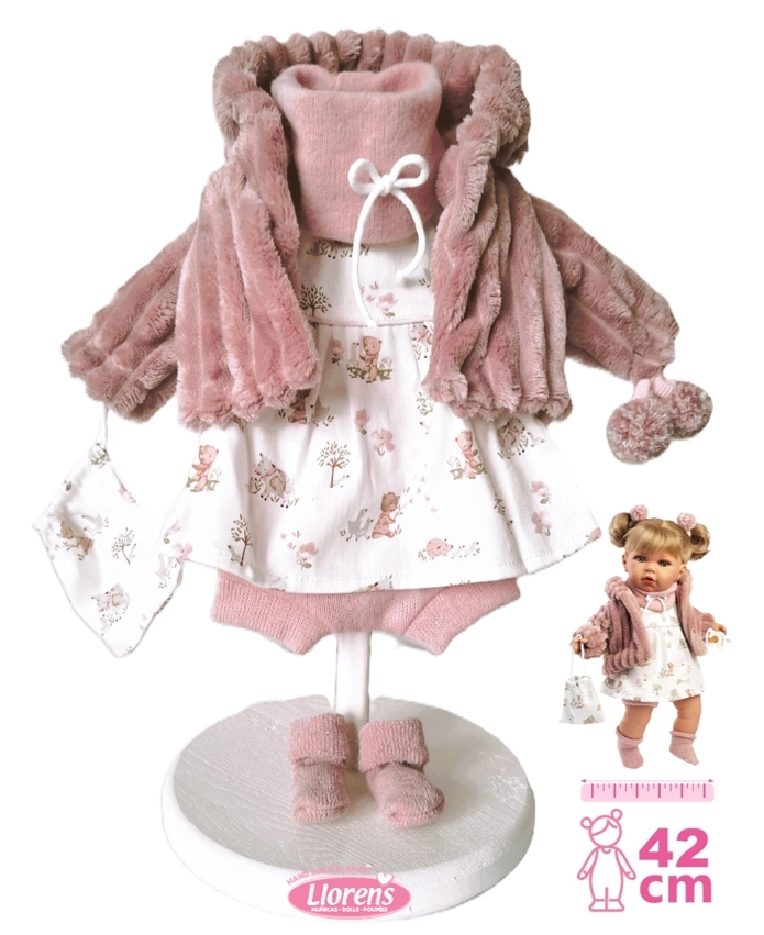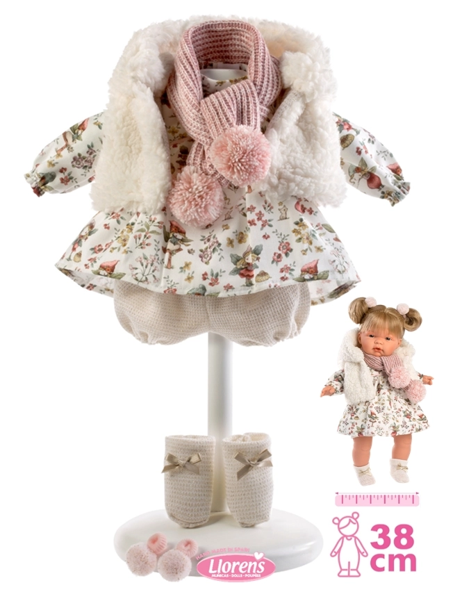 Troverai bambole Llorens da 38 cm e bambole Llorens da 42 cm, neonati femmina e maschio, con corpo morbido oppure completamente in vinile. Ogni bambola è abbinata a eleganti vestitini, copertine e accessori per bambole – biberon, ciucci e braccialetti – spesso presentati in una raffinata confezione regalo.