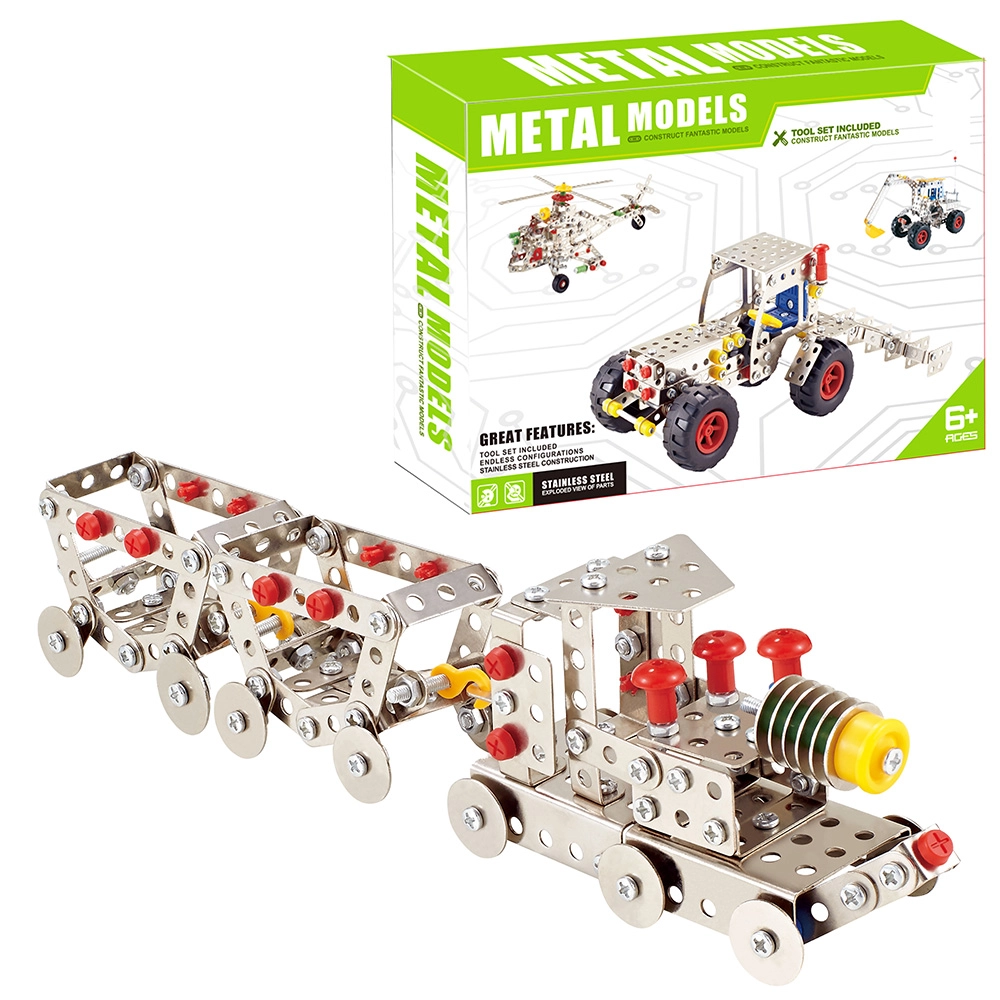 Metti in moto la fantasia e le viti: le costruzioni metalliche trasformano piccoli e grandi in appassionati costruttori. Ogni costruzione meccanica in metallo con pezzi a viti e dadi, profili, lamiere e ingranaggi permette di realizzare modelli meccanici di auto, gru, aerei e macchine. Grazie ai componenti solidI e resistenti, ogni giunzione è stabile e i risultati appaiono realistici.