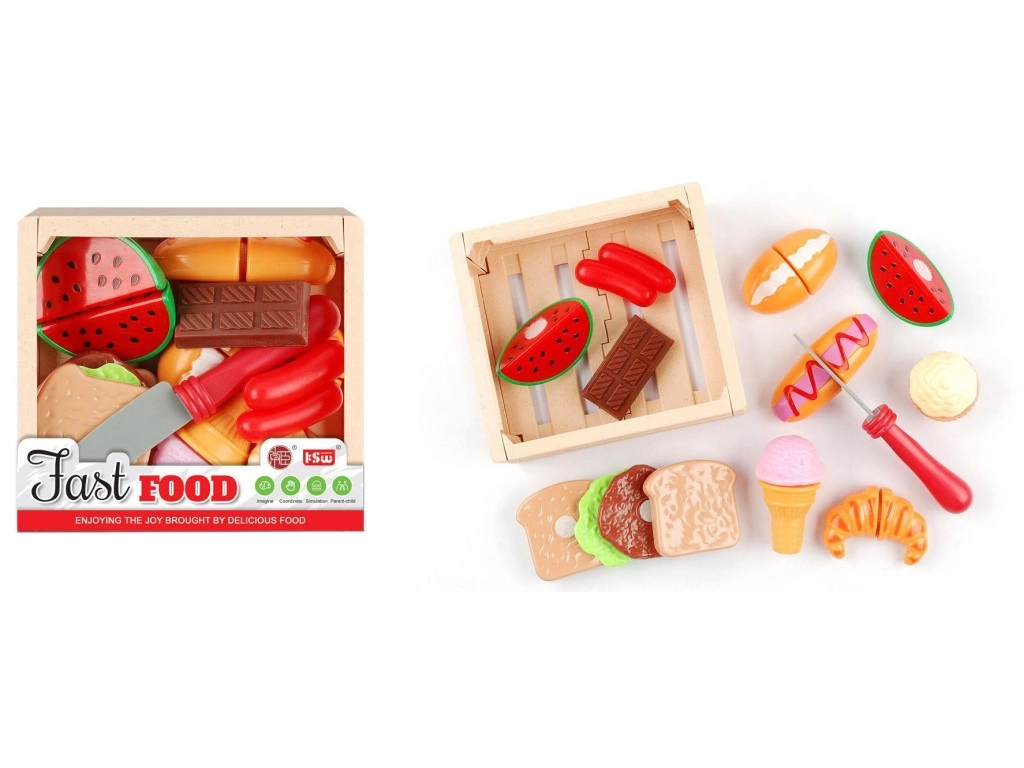 Le casse per bambini offrono lettore di codici a barre e scanner, terminale per carte di pagamento, banconote e monete, calcolatrice, microfono e anche effetti luminosi e sonori: l’ideale per imparare giocando e fare pratica con l’uso della cassa. Grazie ad esse, i bambini imparano a contare, sviluppano la comunicazione con il cliente e la educazione finanziaria. Gli alimenti per il negozio dei bambini (frutta, verdura, prodotti da forno, scatoline o lattine) in legno, plastica e tessuto, spesso con chiusura a strappo o magnete, sostengono la fantasia e la motricità fine.