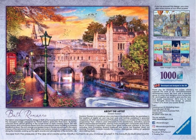 Goditi momenti di calma con il raffinato motivo della romantica atmosfera termale. Il marchio RAVENSBURGER è noto per i pezzi che combaciano alla perfezione, i colori intensi e il materiale resistente, per un’esperienza di gioco fluida e divertente dal primo all’ultimo pezzo.