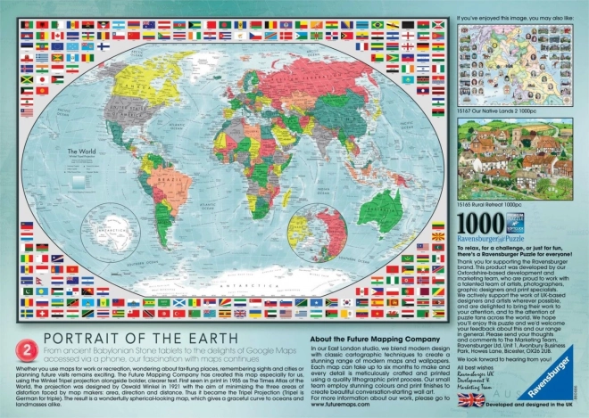 Scopri la gioia di comporre con il puzzle RAVENSBURGER – mappa del mondo colorata da 1000 pezzi, che delizierà gli amanti della geografia e dei puzzle di qualità. Pezzi tagliati con precisione, incastro affidabile e colori intensi garantiscono un assemblaggio fluido e un risultato bellissimo delle dimensioni di circa 70 × 50 cm.