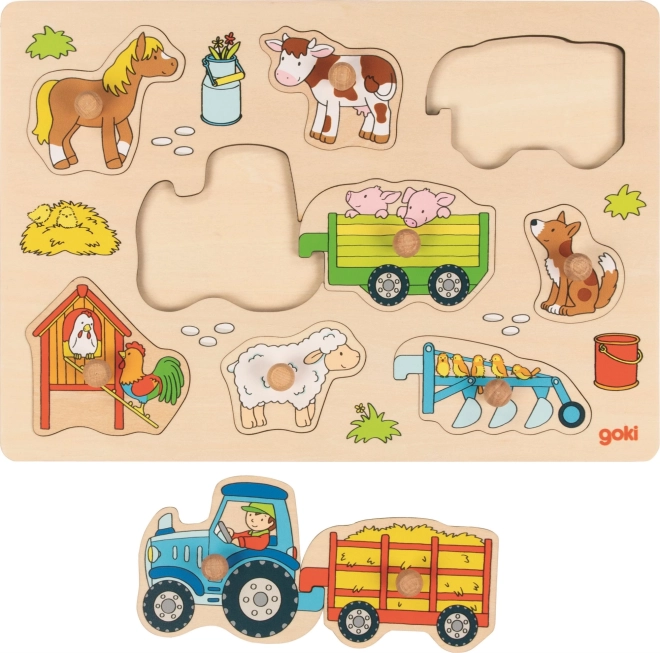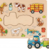 Colorato puzzle a incastro in legno con tema fattoria e trattore che farà felici i più piccoli. Contiene nove pezzi con pratiche maniglie per una facile presa e allena la motricità fine, la coordinazione occhio–mano e il pensiero logico. Grazie alla base in legno e alle cornici, i pezzi rimangono saldamente al loro posto. Adatto ai bambini da 1 anno.