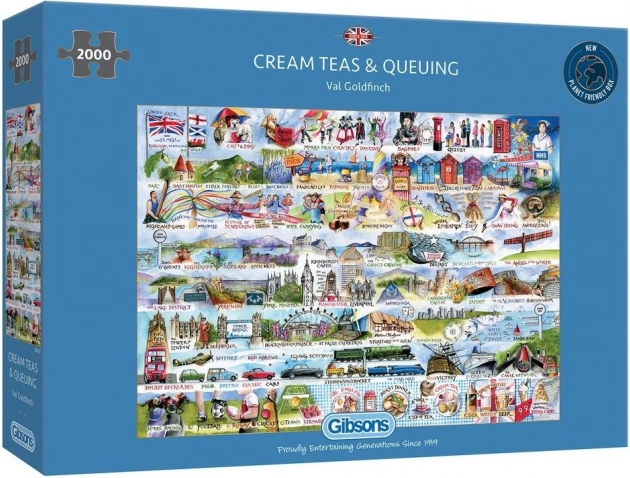 Scoprite il fascino della tradizione britannica con il puzzle di qualità GIBSONS. Questo puzzle dettagliato con il tema dei tè alla panna offre 2000 pezzi e, una volta completato, misura circa 98 × 68 cm. Una scelta perfetta per gli amanti del tè, dell’Inghilterra e delle sfide più impegnative.