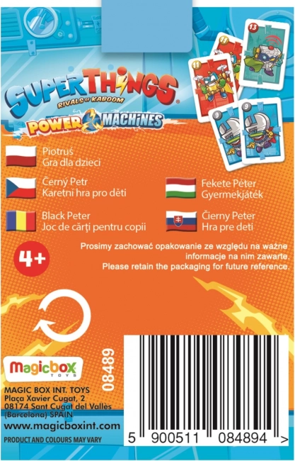 Immergiti nel mondo di SUPERTHINGS con un classico dei giochi di carte che diverte generazioni. Il set di TREFL propone carte colorate con eroi e cattivi della serie Power Machines, così i bambini si godranno non solo la partita ma anche la raccolta dei personaggi preferiti. La confezione compatta entra nello zainetto ed è perfetta da portare in viaggio.