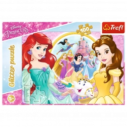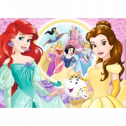 Il magico puzzle per bambini con il motivo delle principesse Disney Bella e Ariel farà felici tutti i piccoli fan. Il puzzle ha 100 pezzi ed è decorato con delicati glitter dorati, che donano un tocco di lucentezza unico sia all’immagine che alla scatola. Una volta composto, l’immagine misura 410 × 278 mm.