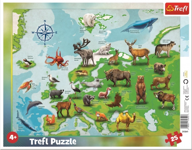 Divertiti con il puzzle da tavolo di TREFL, che presenta una mappa dell'Europa con animali. Grazie alle forme irregolari dei pezzi, offre nuove possibilità di puzzle per bambini dai 4 anni in su.