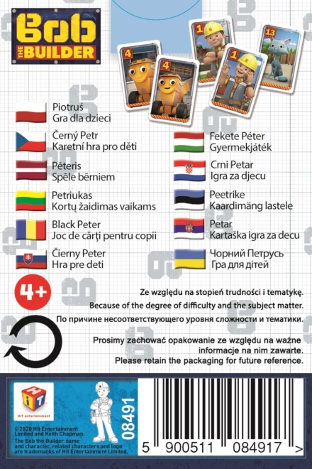 Gioco di carte per bambini con il famoso personaggio Bob Aggiustatutto. I giocatori distribuiscono le carte e cercano di formare coppie. Un gioco allegro che allena l'attenzione e diverte tutta la famiglia.