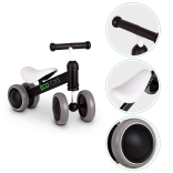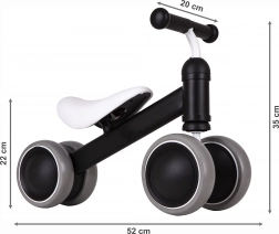 La sicurezza è garantita dalle doppie ruote anteriori per maggiore stabilità e dal blocco del manubrio, che impedisce uno sterzo eccessivo e riduce il rischio di ribaltamento. Le manopole in schiuma sono piacevoli al tatto e antiscivolo, mentre la sella morbida offre comfort anche durante tragitti più lunghi. La struttura in plastica resistente è al contempo leggera (2,2 kg), così la balance bike è facile da maneggiare.