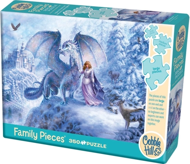 Il puzzle di famiglia COBBLE HILL Drago di Ghiaccio è progettato per essere apprezzato da piccoli e grandi. In una parte dell’immagine troverete pezzi grandi ideali per i bambini più piccoli, al centro pezzi medi per un montaggio confortevole e sull’altro lato pezzi piccoli per i più esperti. Ognuno può così trovare la propria sezione del motivo e comporre in serenità e insieme.