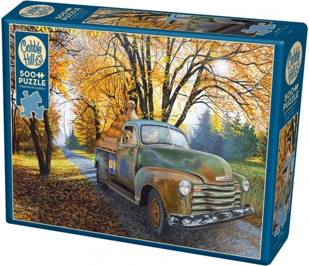 Goditi momenti di relax con il puzzle COBBLE HILL Gioiosa corsa. Il motivo autunnale con un'auto d'epoca carica di zucche e un cane conquisterà gli amanti della nostalgia, mentre il taglio irregolare offrirà una piacevole sfida. Nella confezione trovi anche un poster di riferimento 31,6 × 22,9 cm e l'opera finita misura 67,6 × 48,9 cm. Le tessere in cartone di qualità si incastrano saldamente e mantengono la forma.