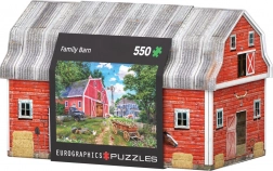 Scopri l’edizione da collezione di puzzle in un’esclusiva scatola di latta che riproduce una fattoria di famiglia. La scatola non è solo un imballaggio pratico, ma anche una decorazione originale per gli interni. Il coperchio forma il centro della fattoria ed è facilmente rimovibile.
