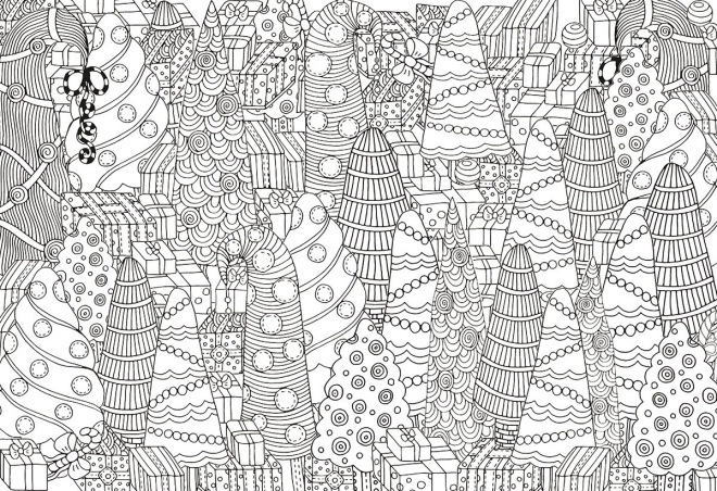 EUROGRAPHICS Color Me Puzzle offre un'unione unica tra composizione e colorazione rilassante. Prima componi l'immagine in bianco e nero con il motivo degli alberi di Natale, poi le dai un tocco di colore personale. Il puzzle finito e colorato si applica facilmente alla parete grazie al kit incluso, ottenendo una decorazione natalizia di stile.