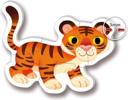Questo set include quattro puzzle separati con motivi di amati animali del safari. Grazie al diverso numero di pezzi (2, 3, 4 e 5) il bambino acquisisce gradualmente sicurezza e piacere nel comporre. I pezzi grandi e robusti, con uno spessore di 3 mm, sono adatti alle piccole mani dei bambini e sono facili da maneggiare.