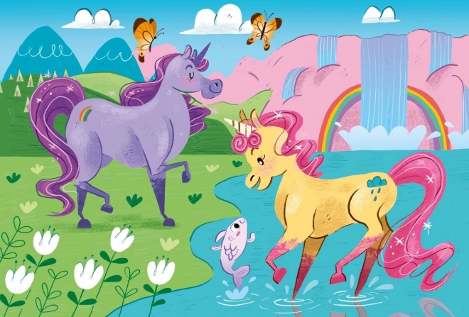 Una graziosa confezione di due puzzle per bambini CLEMENTONI con motivo di unicorni offre 2×20 pezzi per un divertente assemblaggio. Grazie allo strato lucido con effetto diamante ogni immagine brilla e i colori vivaci SuperColor rimangono belli a lungo. I puzzle sviluppano la manualità e la capacità di osservazione e sono adatti dai 3 anni. Le dimensioni del puzzle assemblato sono circa 27 × 19 cm.