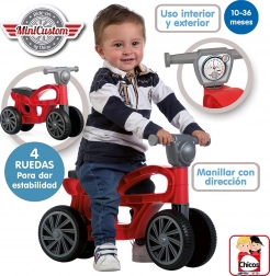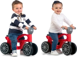 La solida struttura in plastica resiste al gioco quotidiano, mentre le quattro ruote garantiscono sicurezza anche su superfici meno regolari. La biciclettina è progettata per essere stabile, leggera e facile da controllare per i più piccoli.