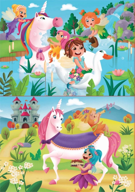 Incantate i bambini con il magico mondo di fate e unicorni con il doppio set di puzzle del marchio EDUCA. La confezione contiene 2 puzzle da 20 pezzi con splendide illustrazioni che sviluppano motricità fine, pazienza e percezione visiva. Una volta completato, ogni puzzle misura circa 28 × 20 cm – dimensione ideale per le mani dei bambini.