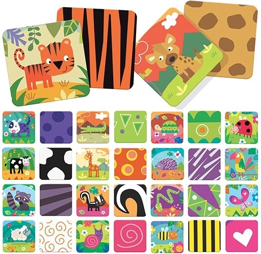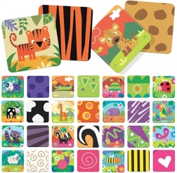 Il set include 50 carte (25 coppie) con una suddivisione logica degli animali secondo l’ambiente: prato, foresta pluviale, savana, bosco e fattoria. Grazie alle carte rigide e resistenti e ai colori e forme ben definiti, il gioco è attraente e durevole. Offre più varianti di gioco ed è perfetto per i bambini in età prescolare dai 3 ai 6 anni.