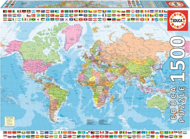 Scopri il mondo con il puzzle di qualità EDUCA da 1500 pezzi che raffigura una dettagliata mappa politica del mondo. Nella confezione è incluso collante gratuito per fissare facilmente l’immagine finita con dimensioni di circa 85 × 60 cm.