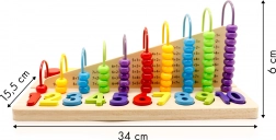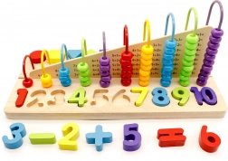 Il set comprende una tavola in legno con operazioni di addizione e sottrazione. Spostando le perline da un lato all'altro il bambino ottiene risultati, un modo eccellente per apprendere a risolvere equazioni semplici.