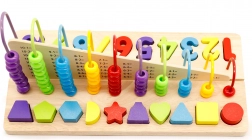 Scopri il mondo dei numeri e delle forme con questo giocattolo divertente ed educativo. Le perline colorate su fili offrono un'esperienza visiva e tattile, supportando lo sviluppo delle operazioni matematiche di base come addizione e sottrazione. Ogni elemento è progettato per aiutare nel riconoscimento di forme e numeri. Contemporaneamente, il giocattolo sviluppa motricità fine e creatività.