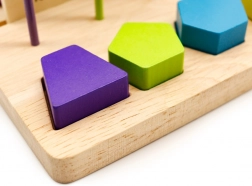 Oltre al pallottoliere, il set include anche forme e numeri in legno colorati. Favorisci il riconoscimento delle forme e l'orientamento nei numeri.