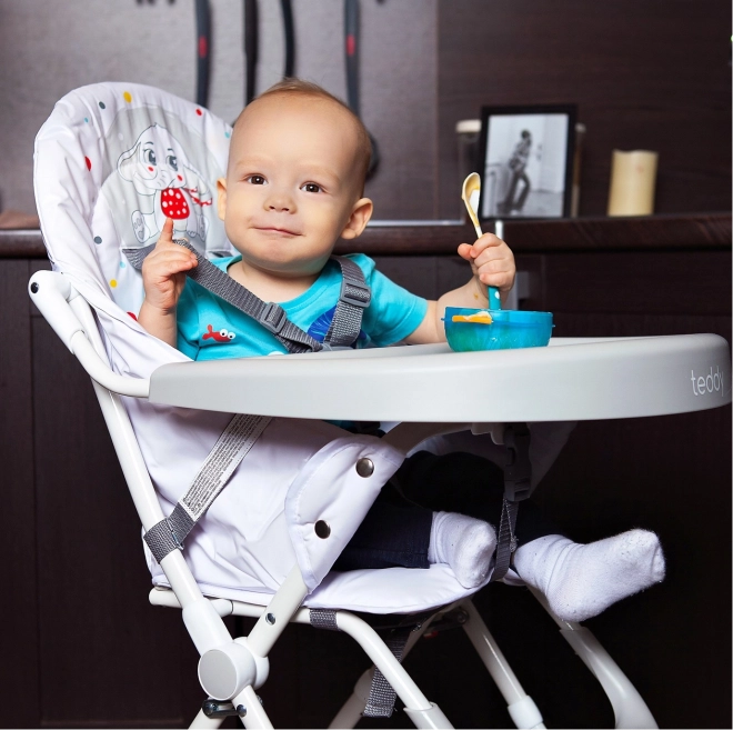 Il seggiolone pieghevole CHIPOLINO Teddy è una scelta leggera e sicura per l’alimentazione quotidiana e le prime pappe. Offre un sedile ampio e confortevole, cinture di sicurezza a 5 punti, un vassoio spazioso e pulizia facile. Grazie alla chiusura compatta si ripone rapidamente anche in spazi ridotti.