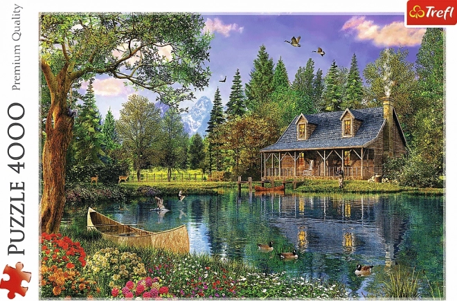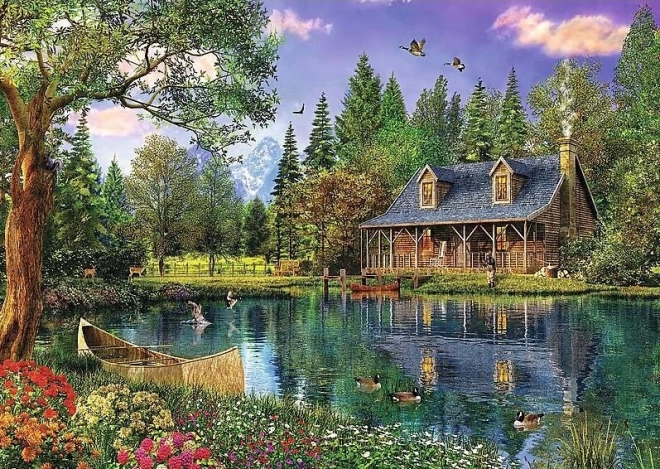 Assapora la quiete della natura con un puzzle in grande formato che raffigura una baita in legno su un lago tranquillo, circondata da alberi e fauna selvatica. Una volta completato, otterrai un’immagine dettagliata di 136 × 96 cm, ideale da incorniciare per impreziosire gli interni.