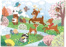 Divertente puzzle per bambini DODO con il tema del risveglio primaverile, offre 60 pezzi, bellissime illustrazioni e un pratico bordo di contorno. L'immagine composta misura 32 × 23 cm e può essere collegata ad altre scene della serie Stagioni. Ideale per bambini dai 4 anni.