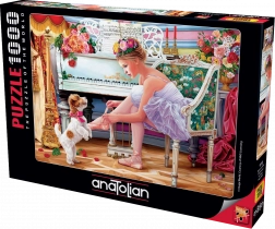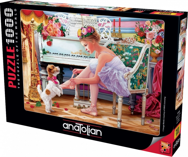 Godetevi l'assemblaggio del bellissimo puzzle Ballerina e il suo cucciolo con 1000 pezzi del marchio Anatolian. Parte della confezione è anche un pratico supporto su cui è possibile posizionare il coperchio della scatola come modello per facilitare l'assemblaggio.