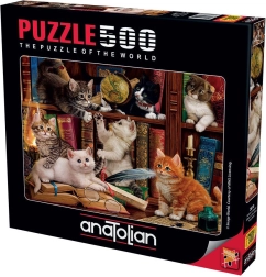 Scopri la magia dell'assemblaggio creativo con il puzzle speciale Gattini in biblioteca. Questo bellissimo motivo ti porterà nel mondo dei libri, dove i gatti fanno compagnia ai giocatori durante i momenti di riposo quotidiano.