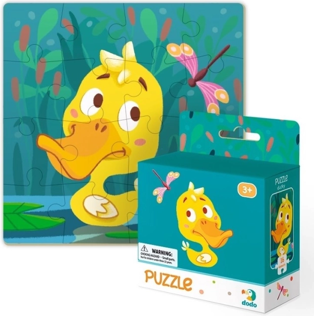 Un adorabile puzzle per bambini con il tema dell’anatroccolo offre 16 pezzi e, una volta composto, misura circa 22 × 22 cm — marchio di qualità DODO.