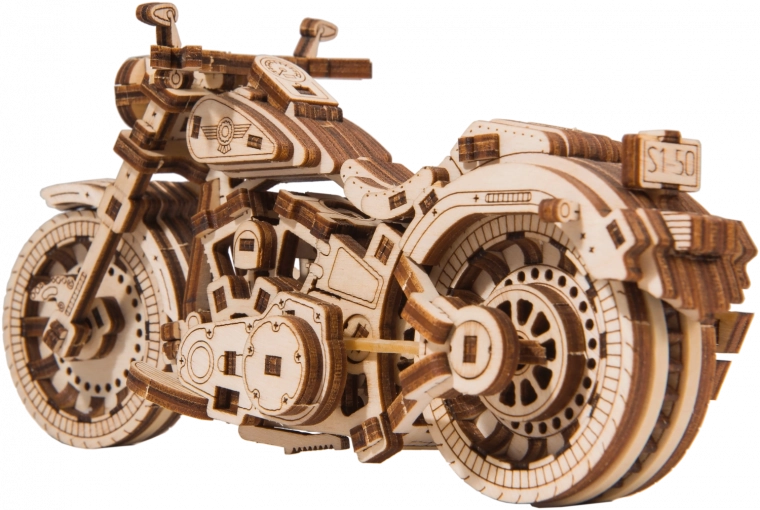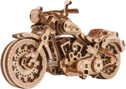 Un kit meccanico in legno della più straordinaria moto Cruiser V-Twin ti aspetta! Grazie al design unico e ai dettagli sorprendenti di questo modello, trascorrerai il tuo tempo con divertimento ed emozioni. Puoi sterzare tramite la ruota anteriore. La moto, con il meccanismo a inerzia, può percorrere fino a 1 metro. Ti entusiasmeranno i cilindri mobili quando si gira la ruota posteriore e anche gli ammortizzatori sulla forcella anteriore. Il Cruiser V-Twin è dotato di dischi freno e ruote gommate.