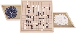 Il set del marchio GOKI include una tavola da gioco in legno e 361 pietre, riposte in una scatola con coperchio in cartoncino rigido. Il produttore pone l'accento su sicurezza, materiali atossici e risorse sostenibili. La tonalità di colore può variare leggermente in base al materiale utilizzato.