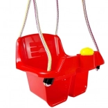 Questa altalena a secchiello è progettata per un'oscillazione sicura e confortevole dei bambini a partire da circa 10 mesi. La seduta profonda con schienale alto e barra a T anteriore mantiene il bambino nella posizione corretta, mentre le corde robuste assicurano una sospensione stabile sia in casa che all'esterno. La plastica resistente sopporta facilmente l'uso quotidiano e le intemperie.