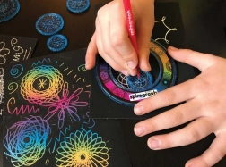 Set creativo di spirografo con cui potrai creare innumerevoli mandala multicolori. Nel set Scratch&Shimmer i mandala si incidono con una penna incisoria in plastica. Basta scegliere tra carta arcobaleno e carta scintillante. La confezione contiene: