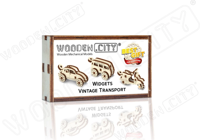 Crea il tuo pezzo di storia con i puzzle 3D in legno WOODEN CITY. Questo set Widgets offre tre miniature di mezzi di trasporto che possono essere usate come portachiavi o decorazioni. Ogni modello è un pezzo unico che ti intratterrà e conquisterà grazie ai dettagli curati e alla funzionalità.