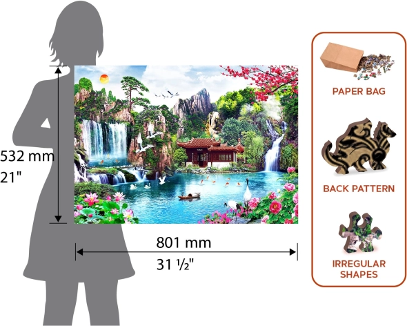 Goditi un'esperienza indimenticabile con i puzzle in legno, che ti porteranno in un magico giardino giapponese. Assemblare con pezzi dalla forma universale e i loro design unici è una vera sfida e allo stesso tempo un divertimento.
