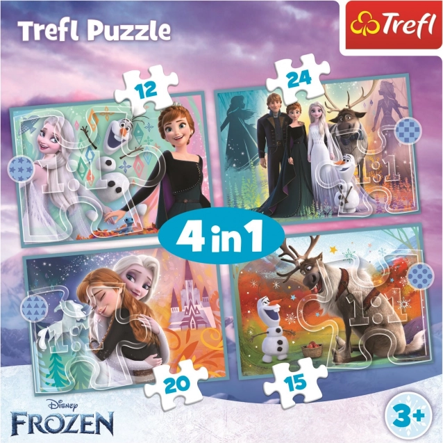 I puzzle 4v1 contengono numeri diversi di pezzi (12, 15, 20, 24), il che fornisce la combinazione ideale per bambini di diverse età. Una volta completati, creano bellissime immagini dal mondo di Frozen.
