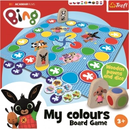 Partite per un'avventura con i vostri eroi preferiti del cartone animato Bing. Il gioco I miei colori è ideale per i piccoli avventurieri che stanno iniziando a scoprire i giochi da tavolo. I bambini saranno entusiasti della possibilità di lanciare il dado in legno, attraversare il piano di gioco, raccogliere gettoni e affrontare ostacoli inaspettati.