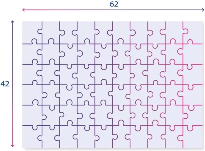 - Dimensioni del puzzle completato: circa 62 x 42 cm.