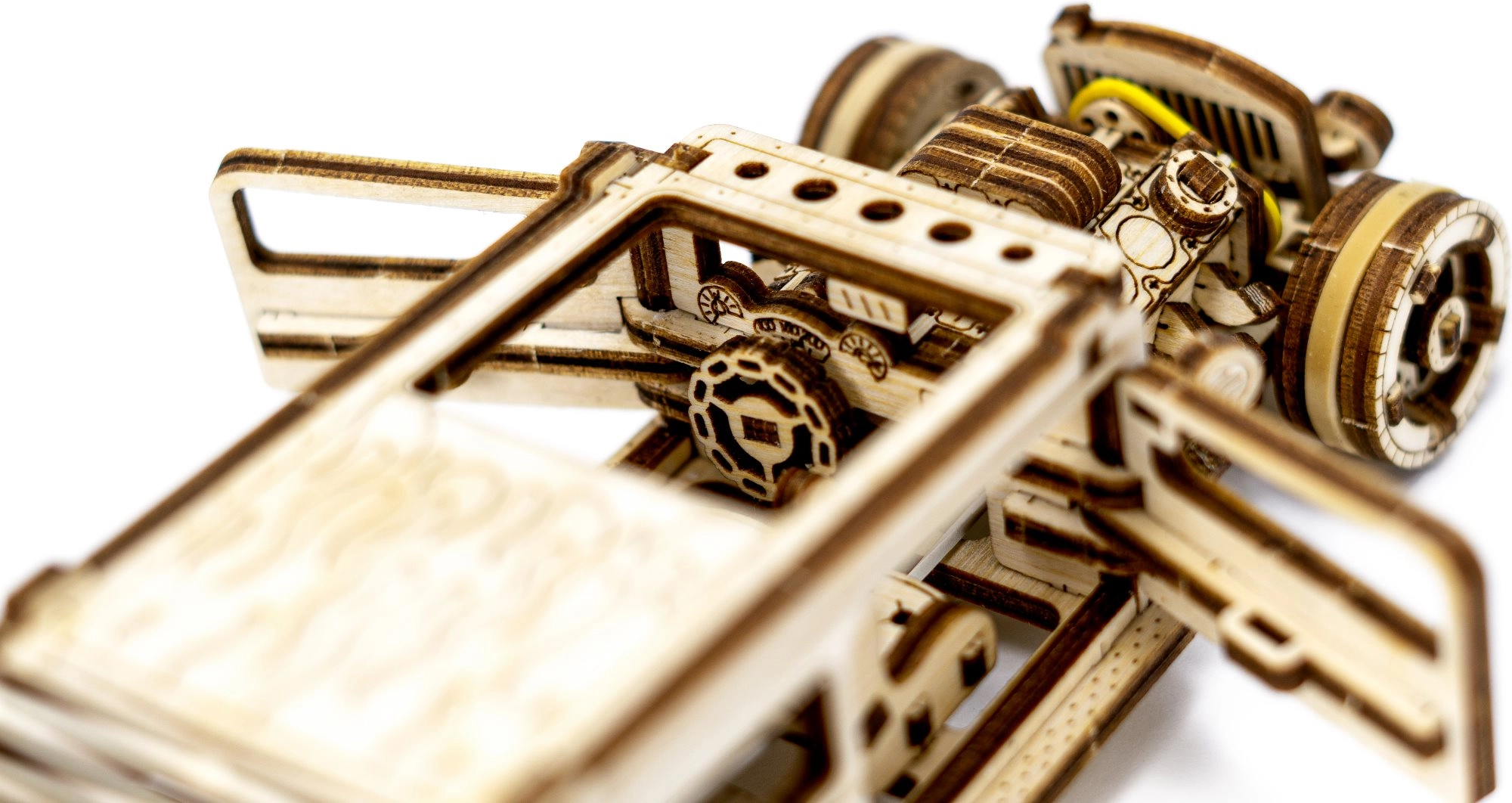 Compensato di betulla tagliato a laser, incastri puliti e montaggio senza colla. Bastano strumenti di base e cerare gli ingranaggi per uno scorrimento fluido.