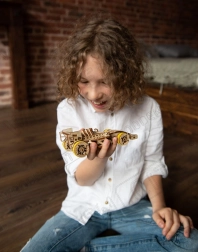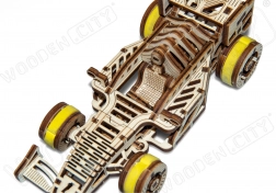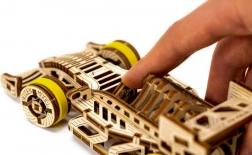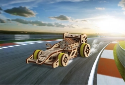 Il puzzle 3D in legno Auto da Corsa di WOODEN CITY è un affascinante accessorio per tutti gli appassionati di meccanica e auto da corsa. Si distingue per ruote anteriori sterzanti, meccanismo a volano e ruota di ritorno. Il modello è dotato di un motore a elastico che permette al veicolo di muoversi fino a 45 cm con una sola carica.