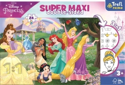 Il puzzle Super Maxi double-face offre ai bambini il doppio del divertimento. Un lato propone un’immagine colorata con le principesse DISNEY PRINCESS e 24 grandi pezzi che le manine possono comporre con facilità. L’altro lato funge da pagina da colorare e da semplice attività di conteggio, che stimola il pensiero logico e la coordinazione occhio–mano.