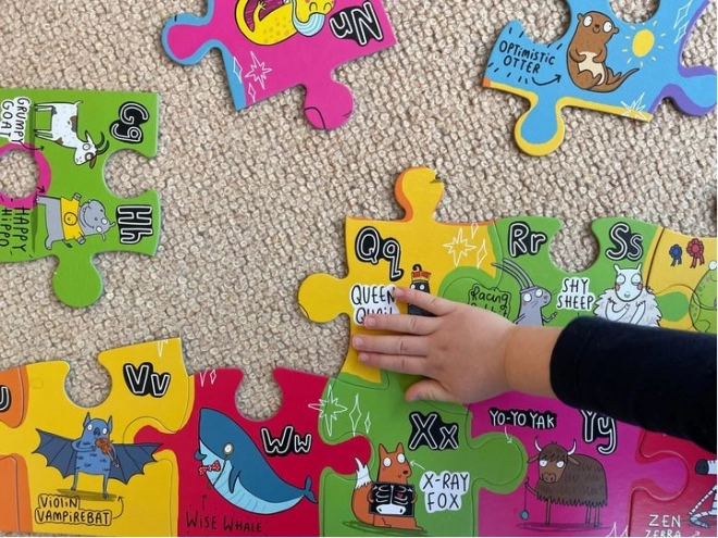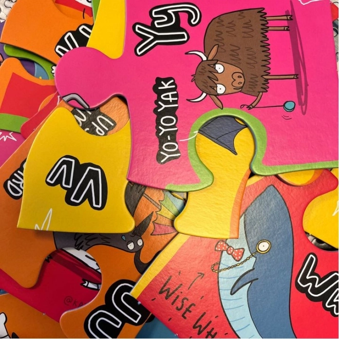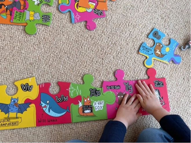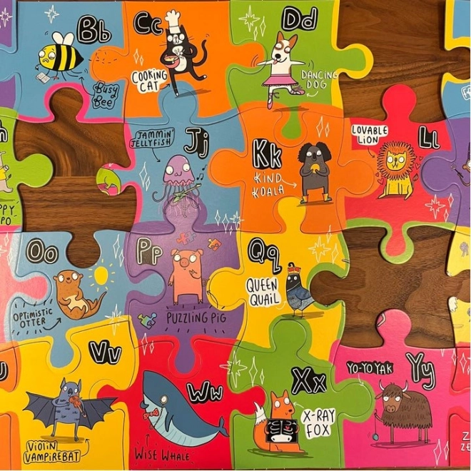 Ogni pezzo del puzzle rappresenta un personaggio animale unico associato a una lettera dell'alfabeto. Così i bambini si divertiranno e impareranno allo stesso tempo.