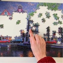 Scopri la bellezza di Amsterdam comodamente da casa tua con il puzzle panoramico. Questo puzzle offre la combinazione perfetta di divertimento e relax per gli amanti dei rompicapo: