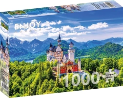 Vivi una meravigliosa vista del castello di Neuschwanstein in estate con questo puzzle dettagliato da 1000 pezzi. Il puzzle Castello di Neuschwanstein offre ore di divertimento e relax catturando perfettamente la bellezza di uno dei castelli più fiabeschi del mondo.