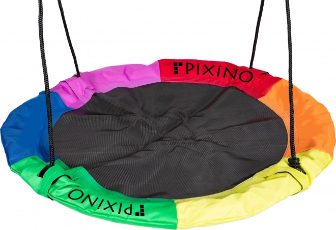 Il cerchio altalena PIXINO si distingue per il suo design vivace e multicolore, che aggiunge luce e allegria a qualsiasi giardino.