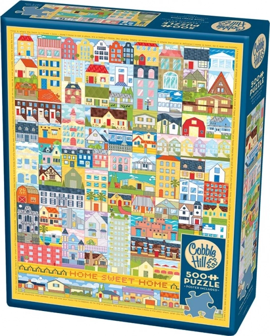 Goditi il montaggio con il puzzle da 500 pezzi COBBLE HILL “Casa, dolce casa”. Grazie alla fustella irregolare offre una maggiore difficoltà e sagome dei pezzi originali. La confezione include un poster di riferimento 30,5 × 22,9 cm; il puzzle finito misura 48,9 × 67,6 cm.