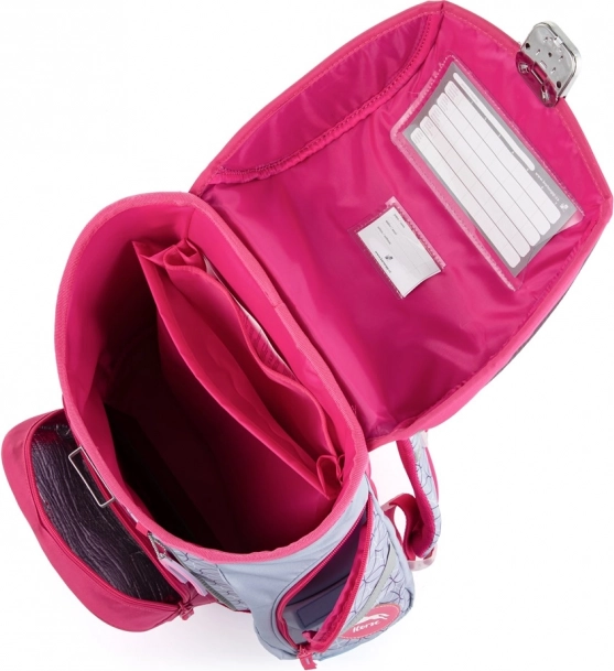 Lo scomparto principale è sufficientemente spazioso per tutto il materiale scolastico della 1ª e 2ª classe, mentre la tasca frontale è ideale per la merenda. Il fondo rigido protegge il contenuto e aumenta la stabilità contro i ribaltamenti. La fibbia di sicurezza rende la chiusura più semplice e gli elementi riflettenti migliorano la visibilità del bambino al crepuscolo e al buio.